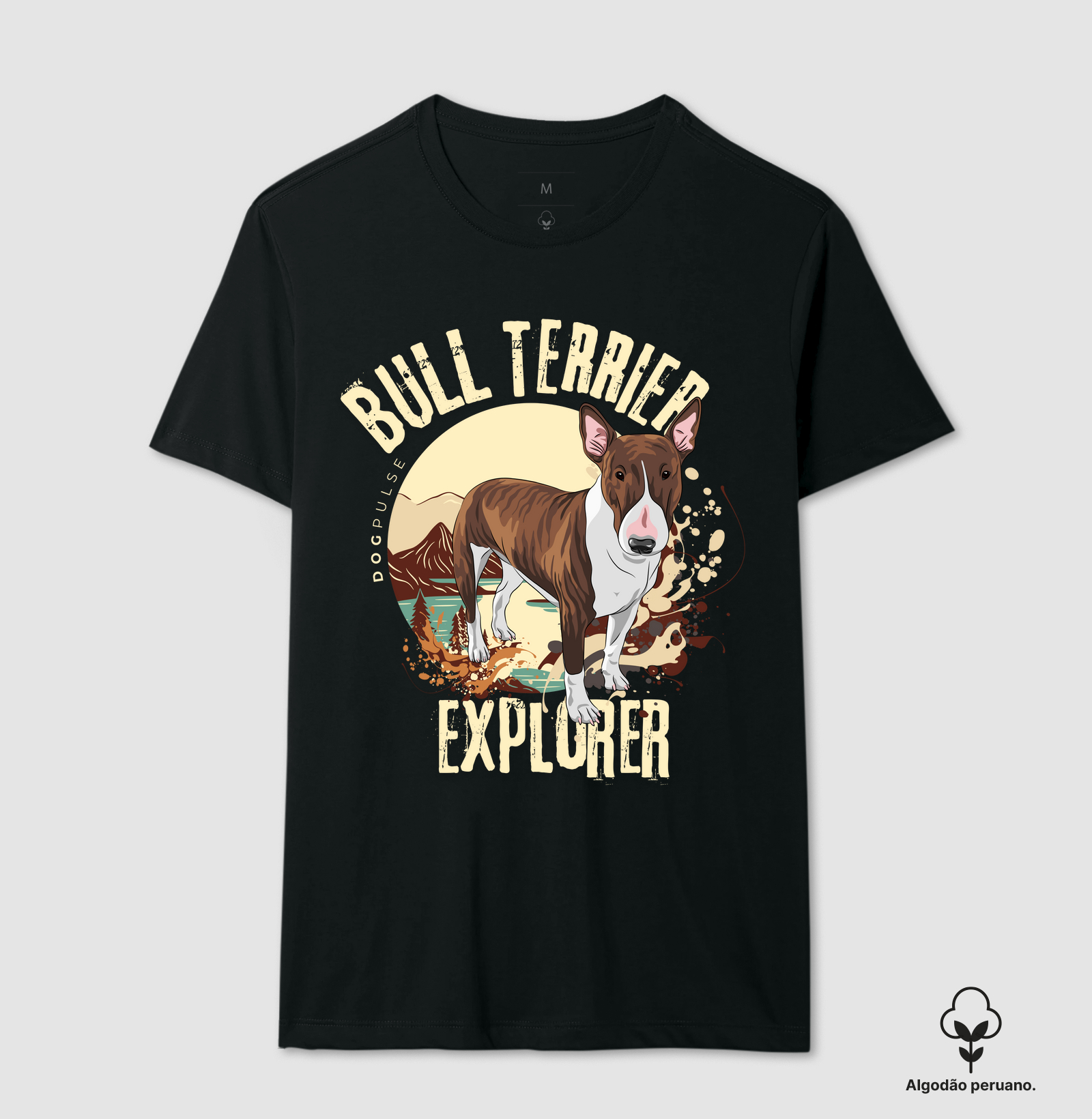 Camiseta Algodão Peruano Dog Pulse Bull Terrier Explorer – Bold Adventure: A Coragem de Explorar A Camiseta Dog Pulse Bull Terrier Explorer – Bold Adventure é a escolha ideal para quem adora explorar o mundo ao lado de seu fiel e destemido Bull Terrier. Com um design robusto e cheio de estilo, essa camiseta capta a essência audaciosa e enérgica da raça. O Bull Terrier é conhecido por sua coragem, lealdade e espírito aventureiro, tornando essa peça um tributo perfeito à sua personalidade única. Ideal para aventuras ao ar livre ou momentos casuais, essa camiseta combina conforto e atitude, para tutores que compartilham da mesma coragem de seus companheiros de quatro patas.